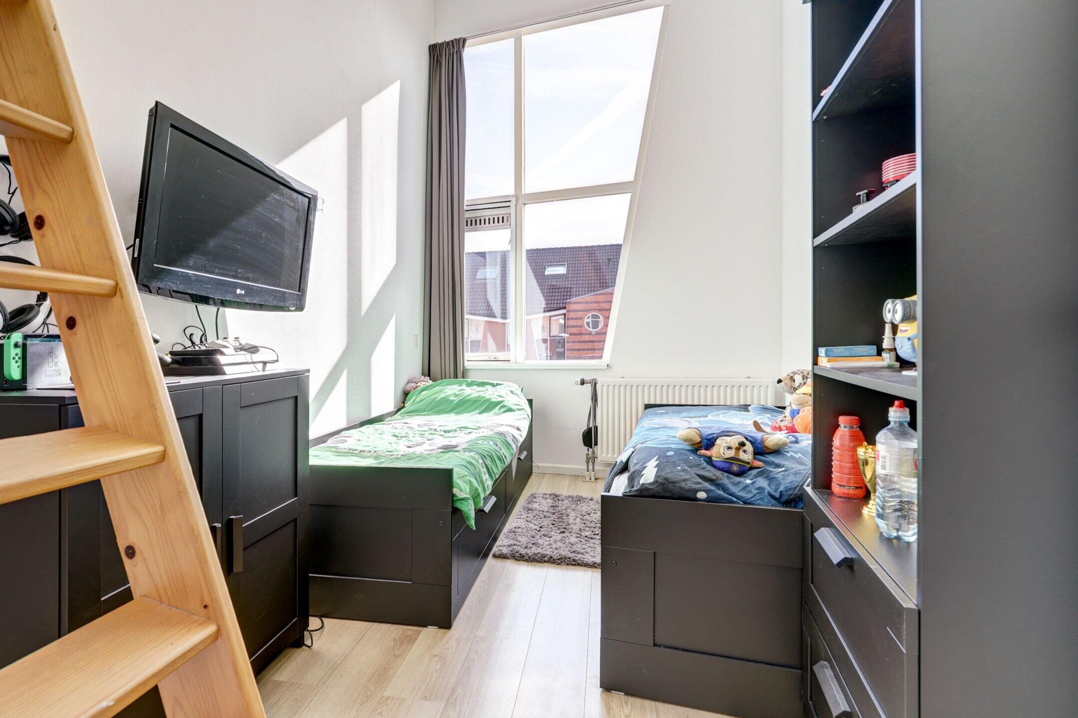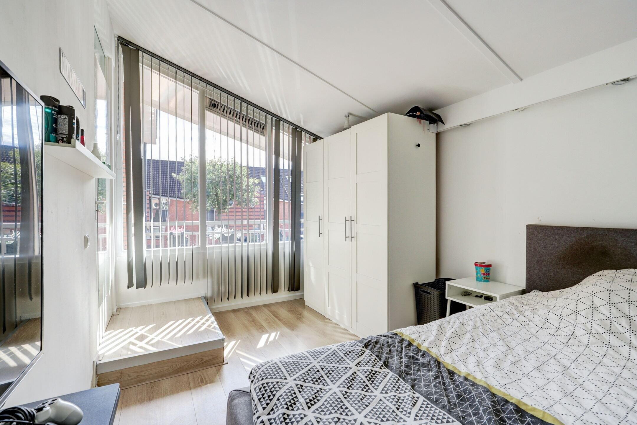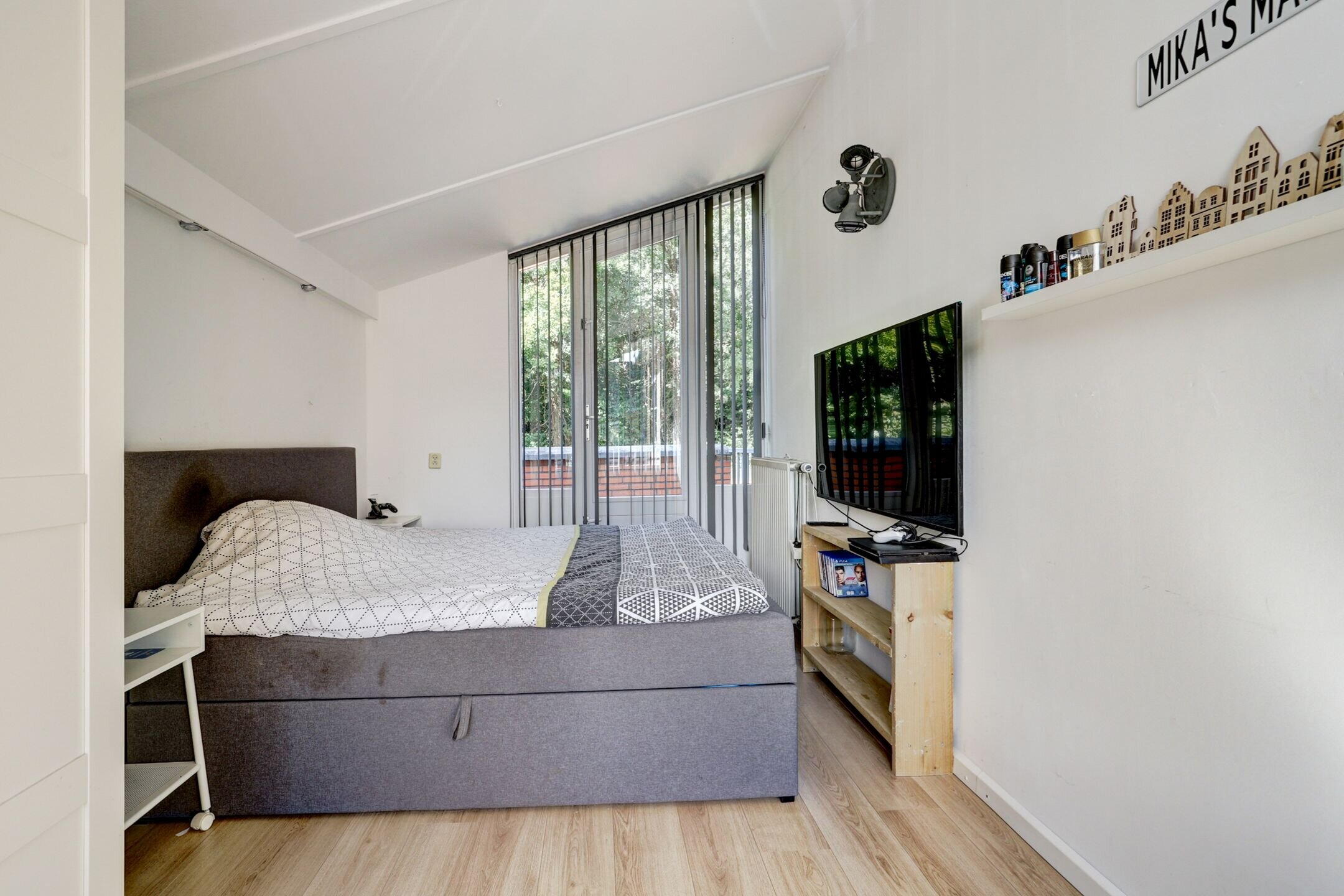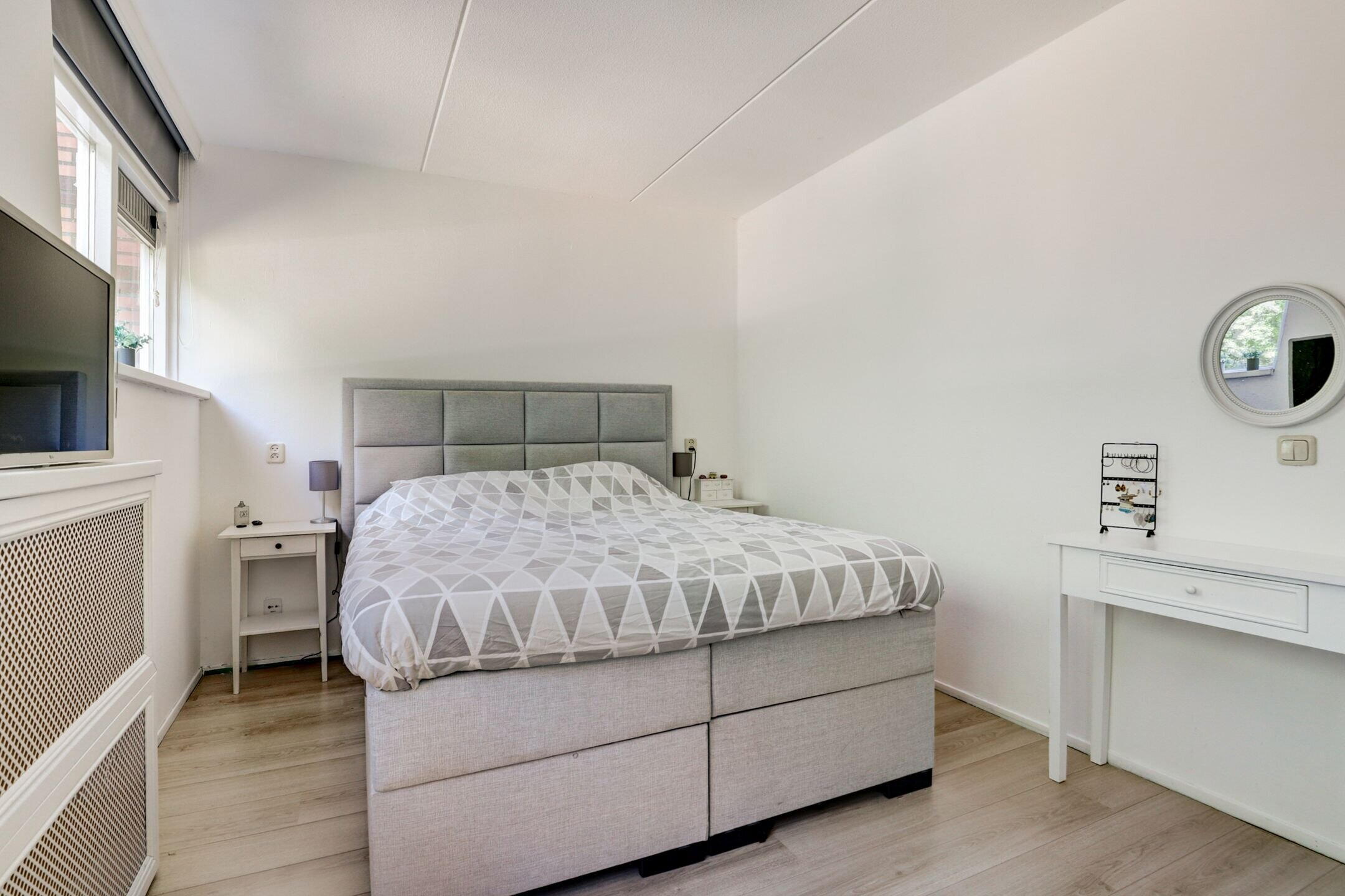De slaapkamer aan de achterzijde is een ruime, lichte en fijne slaapkamer.