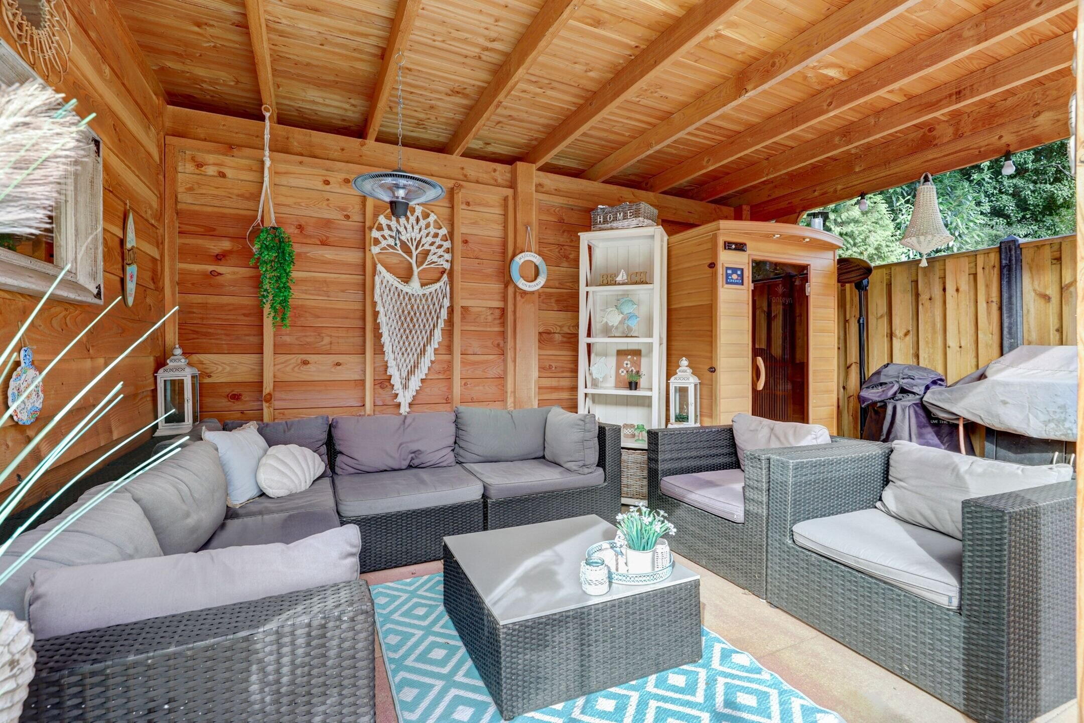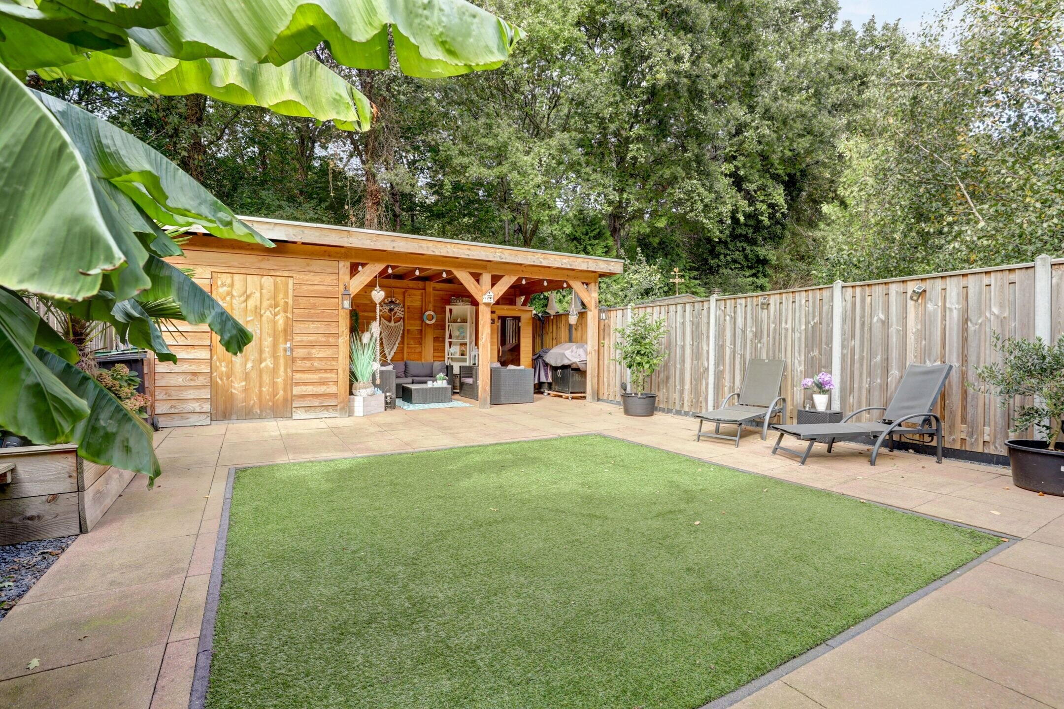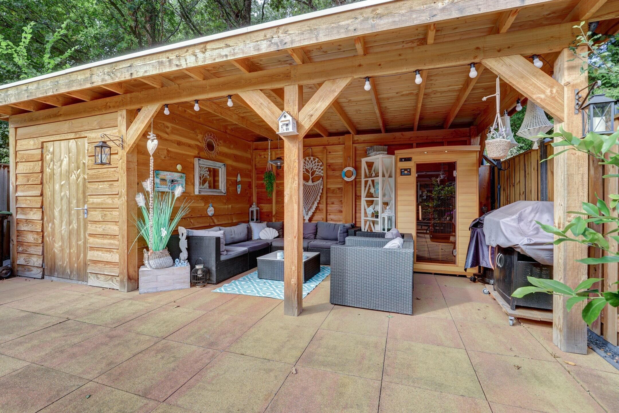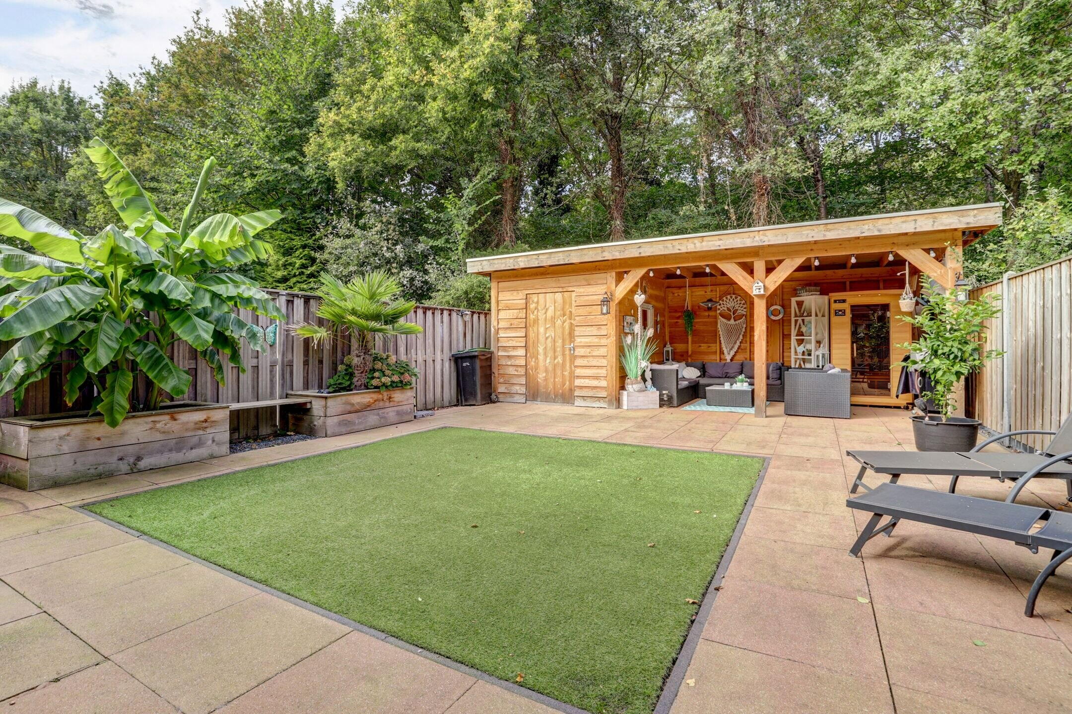 - Fraai aangelegde tuin met nieuwe berging, overkapping en sauna