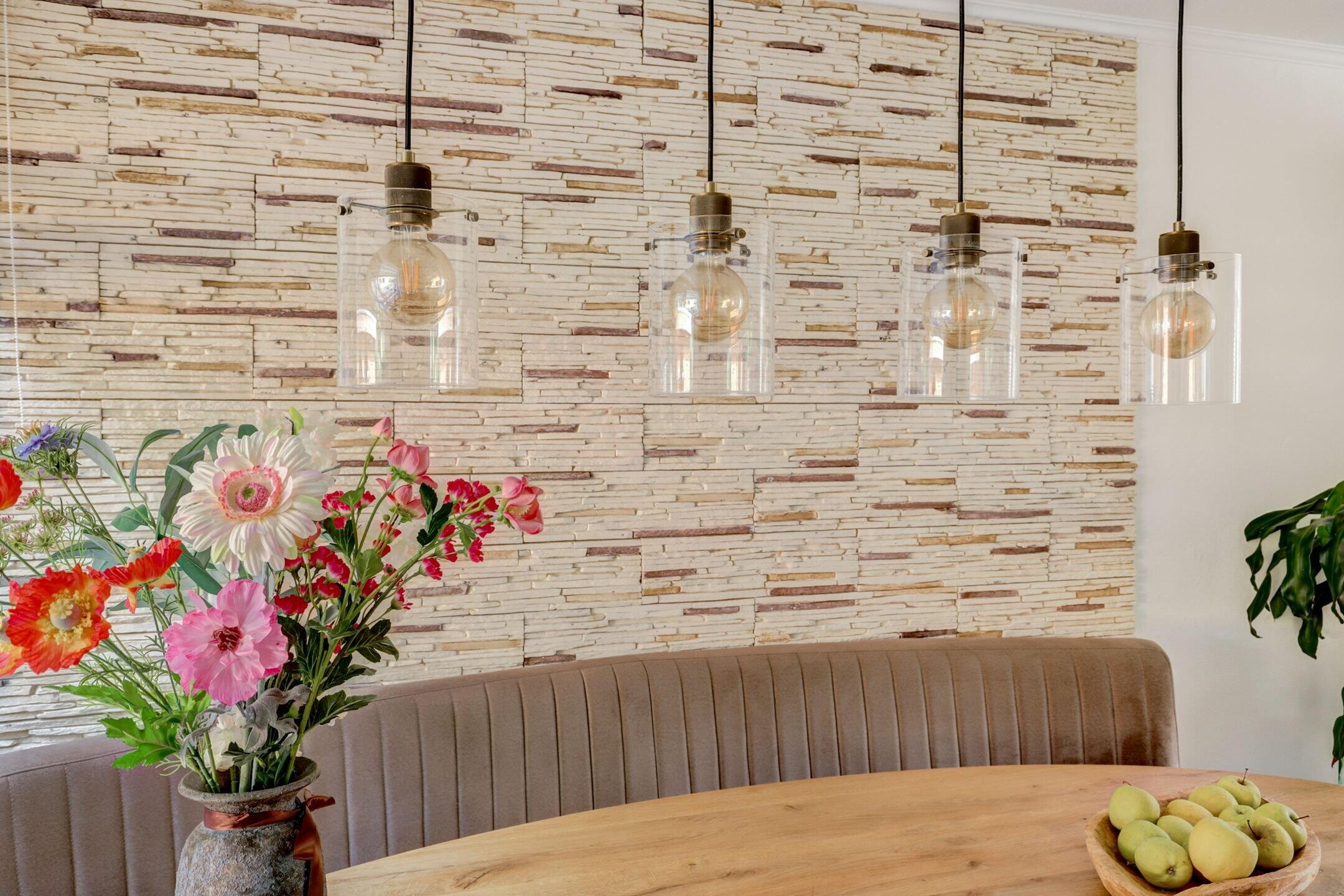 De zithoek voelt warm en uitnodigend aan, een heerlijke plek om thuis te komen.